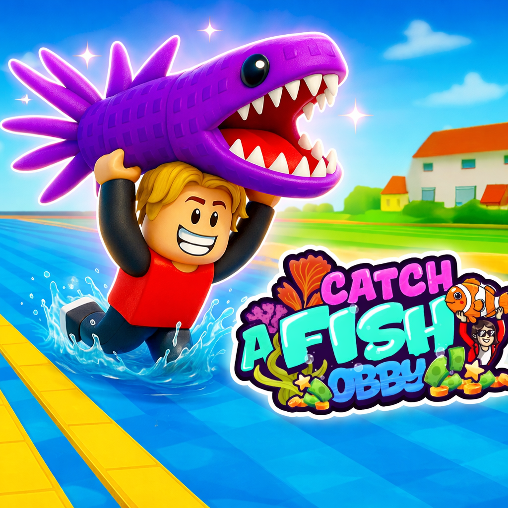Catch a Fish Obby is a casual simulation strategy game set inside a colorful Roblox world packed with fish and playful chaos. Players jump across wet platforms, gather rare sea creatures, and turn them into a steady income. Meanwhile, rival bases create constant risk and opportunity. Progress depends on smart collection, careful movement, and base protection. So step into the water arena, claim valuable fish, and start building your aquatic empire today!