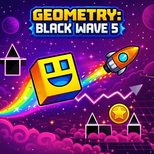 Geometry: Black Wave 5 lets you select from 30 stages with varied difficulty, arranged freely for flexible challenges. You can choose any level to challenge yourself without having to complete them in order. Your mission is to guide a geometric wave through tight spaces, aiming to reach the finish line while collecting three hidden coins. To control the wave, you just need to hold down the left mouse button to fly upward and release to fly downward. Each completed level rewards diamonds, which unlock new wave skins in the shop. Master control, gather every coin, and push through increasingly complex obstacle patterns.