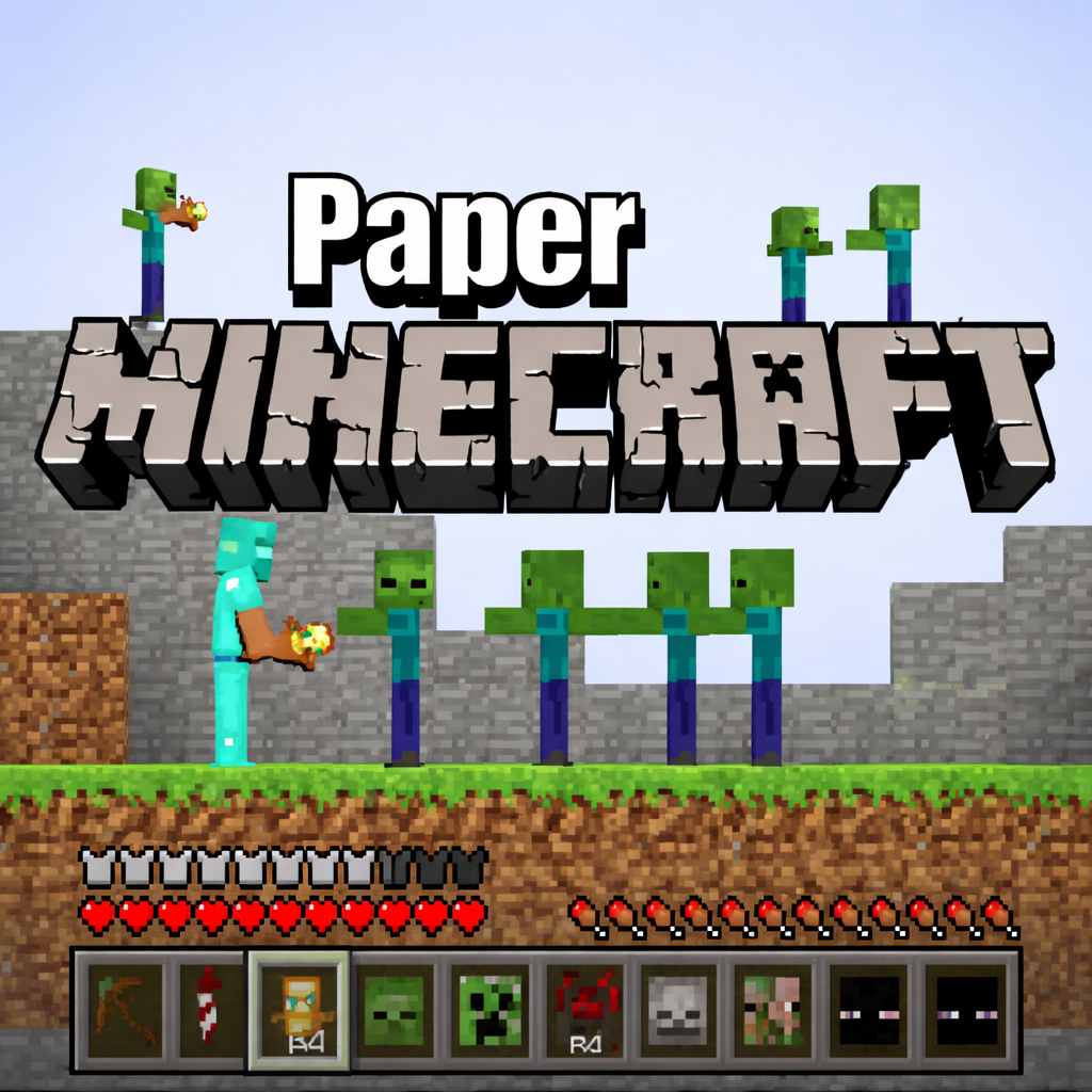 Paper Minecraft brings a sandbox platform experience into a 2D side-scrolling world packed with survival and crafting elements. Inspired by the original hit, this fan-made version recreates familiar mechanics through a fresh visual perspective. Moreover, procedurally generated biomes stretch endlessly, offering forests, deserts, and frozen lands to explore.